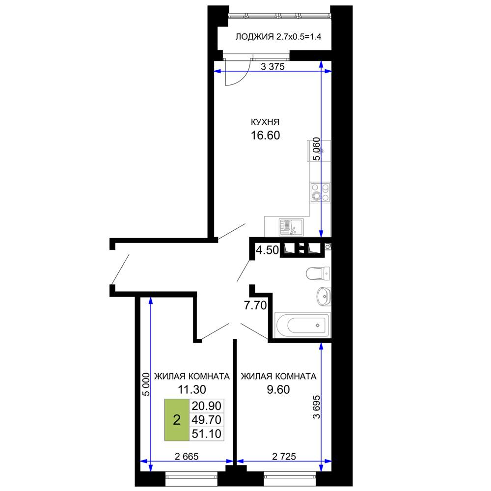Продается 2-комн. квартира, площадью 51.35 м2 в монолитной новостройке. Возможен вариант покупки с использованием ипотечных средств, есть рассрочка, возможна покупка с использованием материнского...