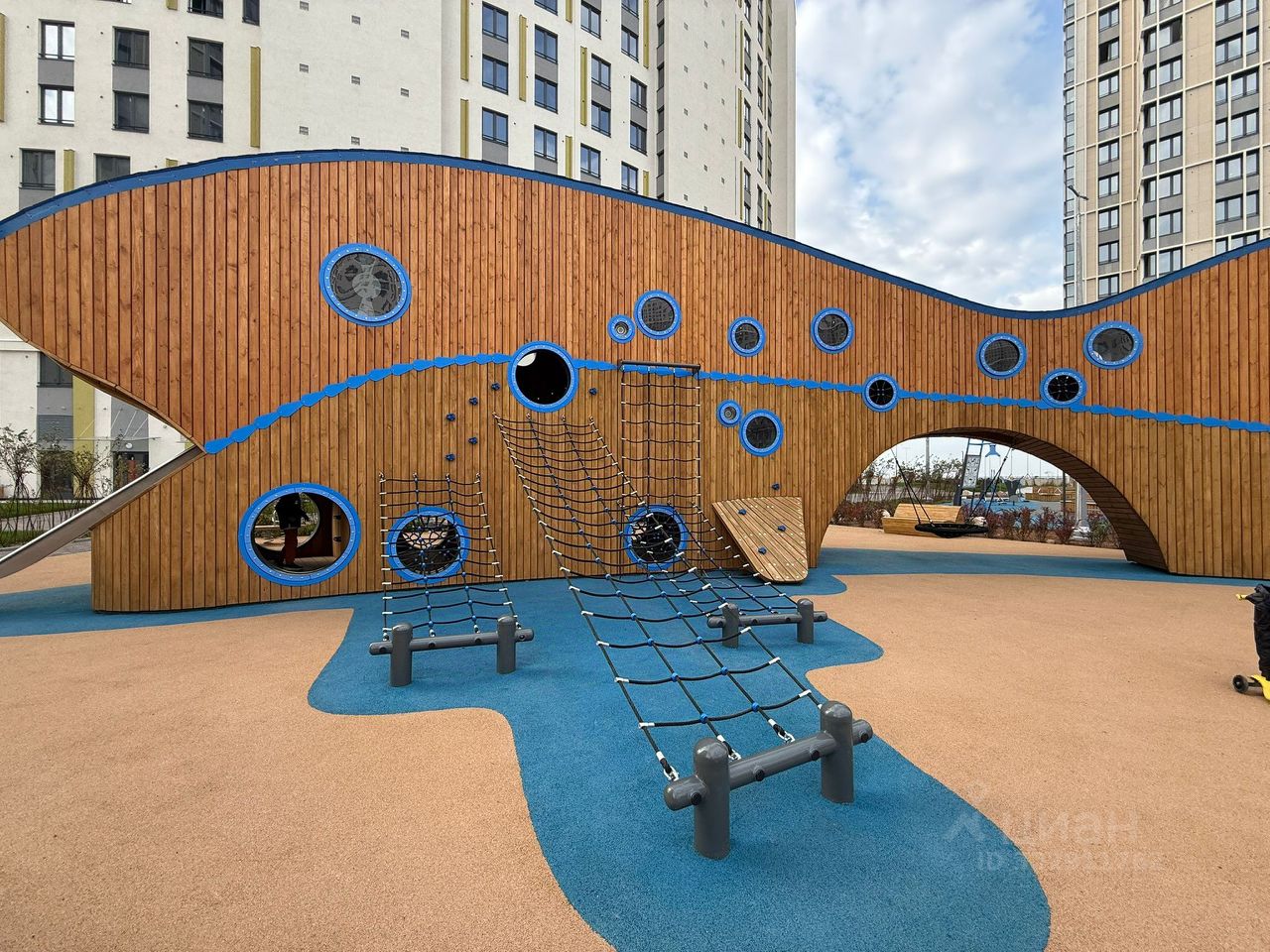 Закрытая территория с детскими площадками и зонами отдыха.