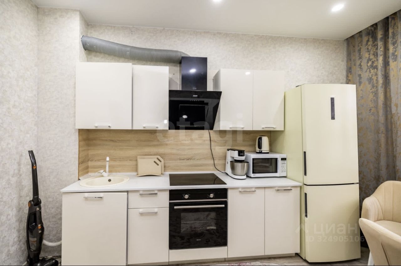 • Полностью оборудована: духовой шкаф, плита, вытяжка, холодильник, микроволновка, чайник
