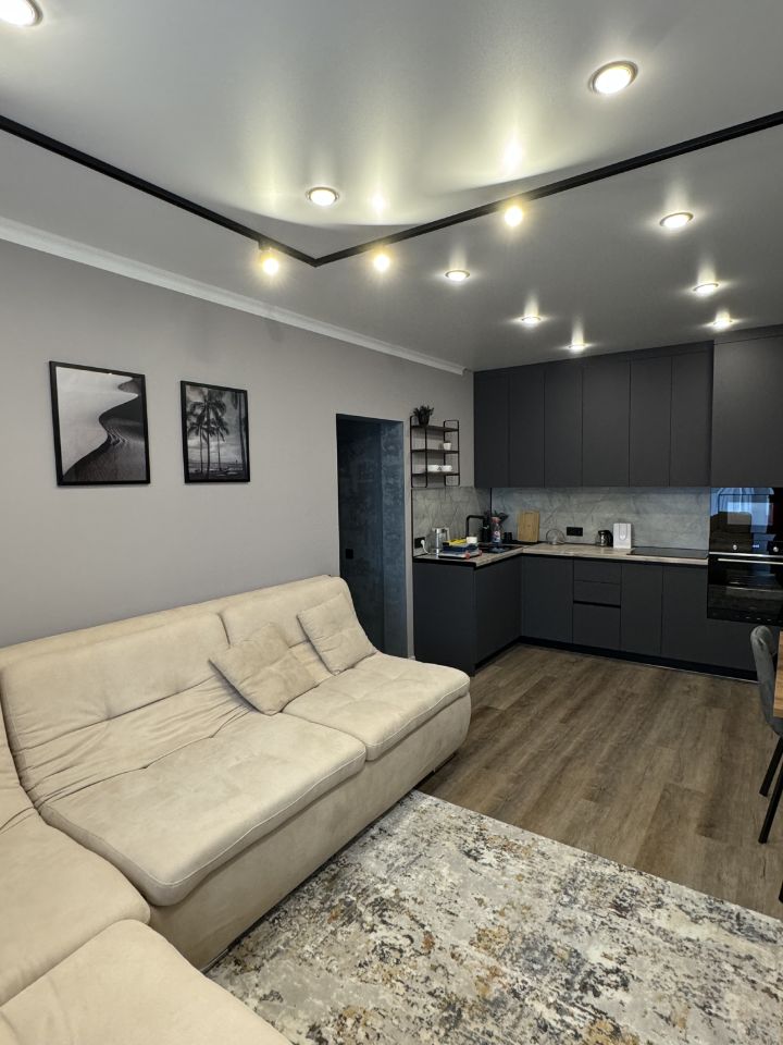 Сдаётся в аренду квартира в самом центре нашего города. Расположена на 16 этаже нового 20-этажного дома, построенного в 2023 году. Планировка: две полноценных спальни и кухня-зал.