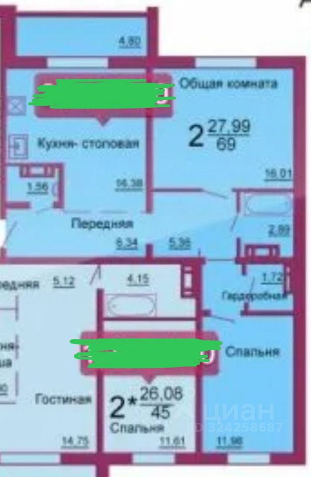 | Площадь общая | 68 |