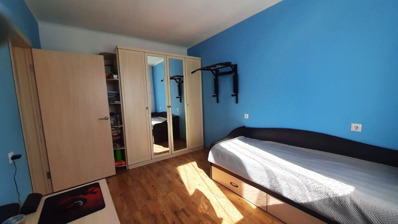 Квартира светлая, теплая, не угловая. Есть всё для комфортного проживания: кух. гарнитур, плита, холодильник, СВЧ, стол+стулья, кабельное +Wi-Fi (Интерсвязь), стиральная машина, 3 спальных места. Застекленный балкон. В детской: односпальная кровать, большой шкаф, стол+стул, турник. В квартире сделан косметический ремонт.
