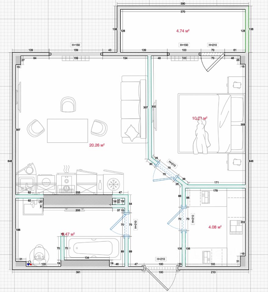 | Площадь общая | 46 |