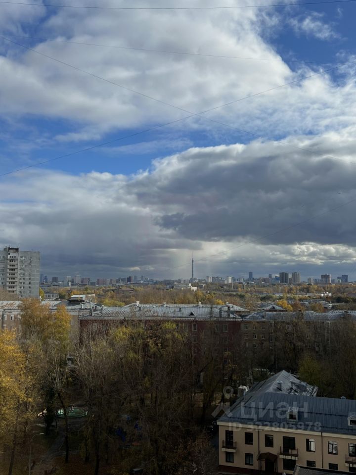Квартира находится на 11 этаже панельного дома. Из окон открывается панорамный вид на Москву и Останкинскую башню. Есть застеклённая лоджия, выходящая во двор.