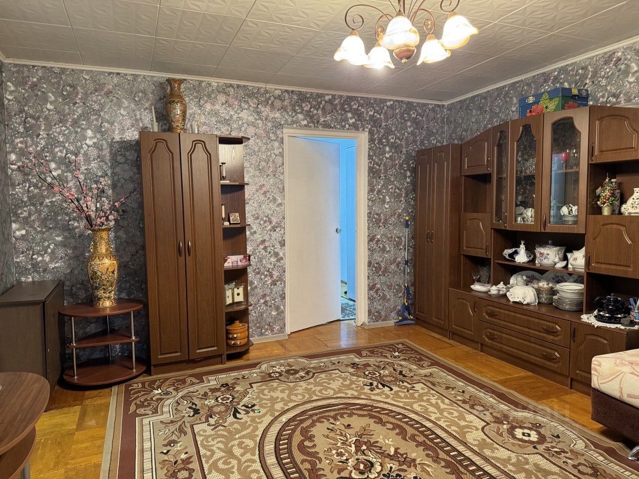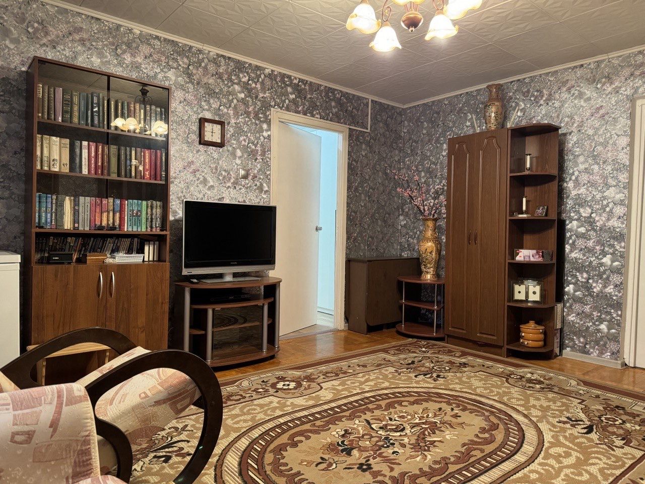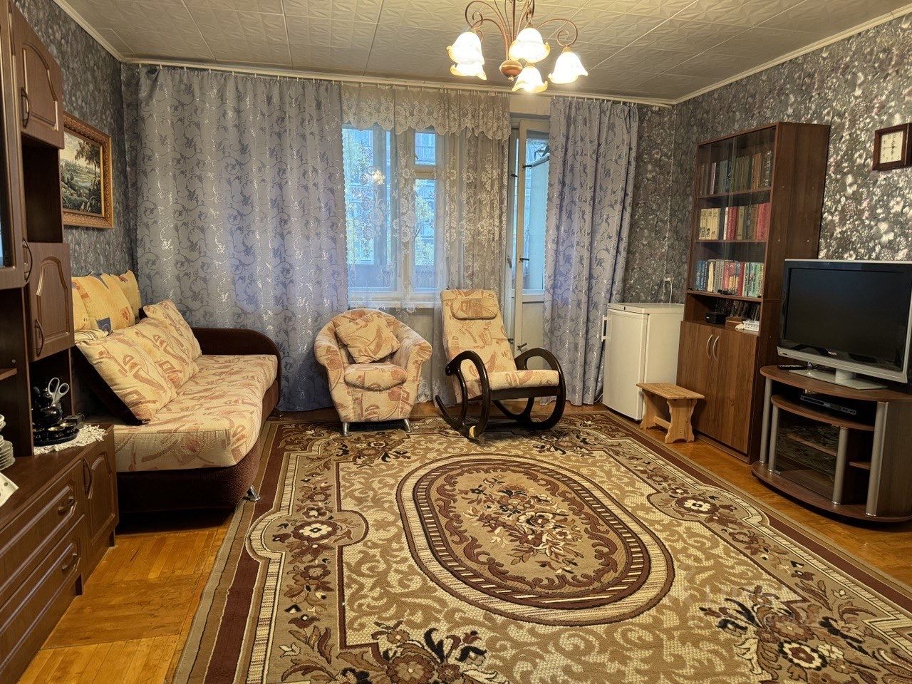 - в комнатах есть кровать с матрасом, диван со спальным местом в гостиной, тахта в маленькой комнате, шкафы, письменный стол, трюмо, комоды, кресло- качалка.