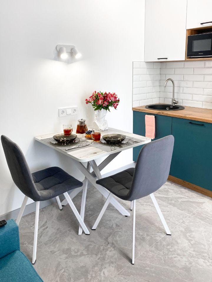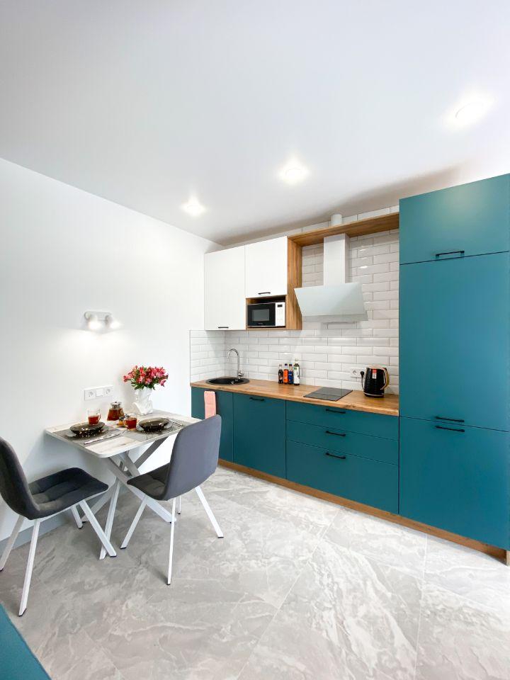 1. Полностью укомплектована кухня (плита, вытяжка, холодильник, микроволновая печь, посудомоечная машина)