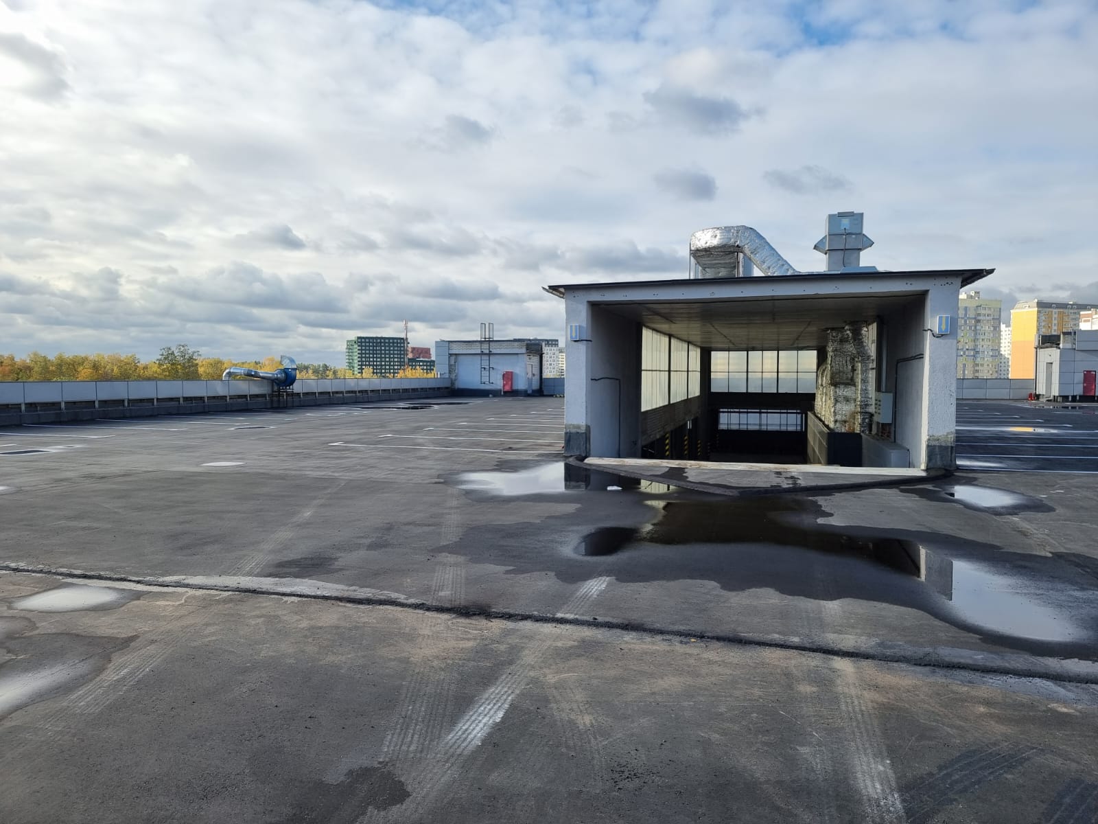 Внутри есть лифт, а также рампы для въезда и выезда автомобилей. Помимо внутренней парковки есть наземная на прилегающей территории. В здании есть все необходимые коммуникации — отопление, электроснабжение, водопровод, канализация, мокрые точки, санузлы, вентиляция.