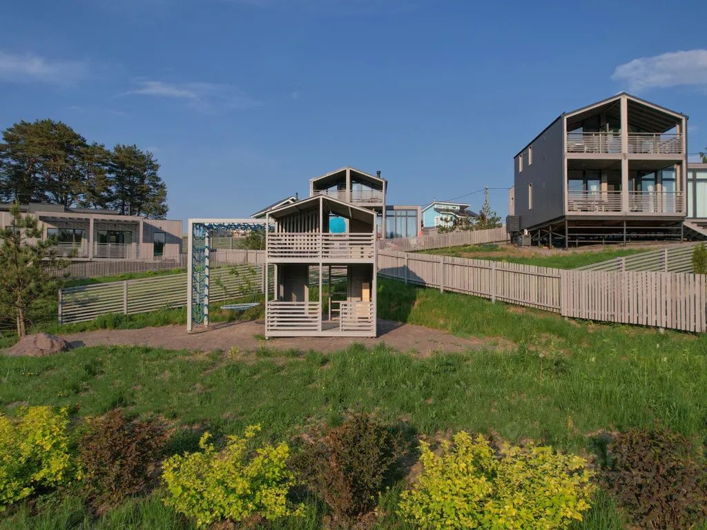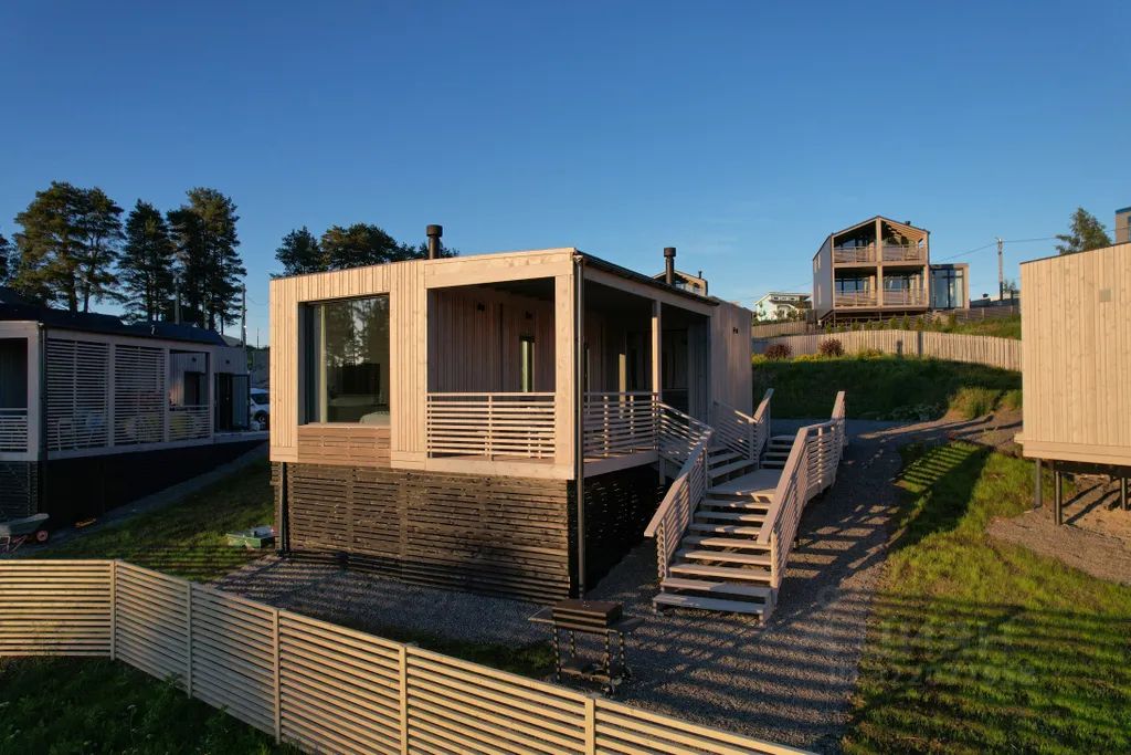 У нас на территории 6 домов разной вместимости (коттеджи Лигу-Лапи)