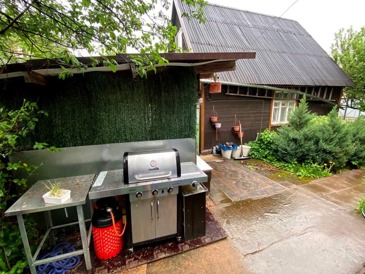 На участке есть площадка с мангалом.