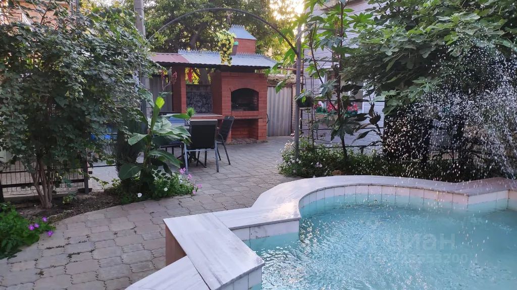 Отдельный дом для 1 семьи. В доме 1 кондиционер, душевая, аанузел, кухня, холодильник, стиральная машина, wi-fi. Озелененный отдельный двор с бассейном стационарным мангалом, местом отдыха, беседка, баня, качели. Парковка на 3-4 машины. Магазины в шаговой доступности. До моря 7 минут ходьбы. Берег мелкий песок. Остановка общественного транспорта 50 метров. " магнит" 100 м.