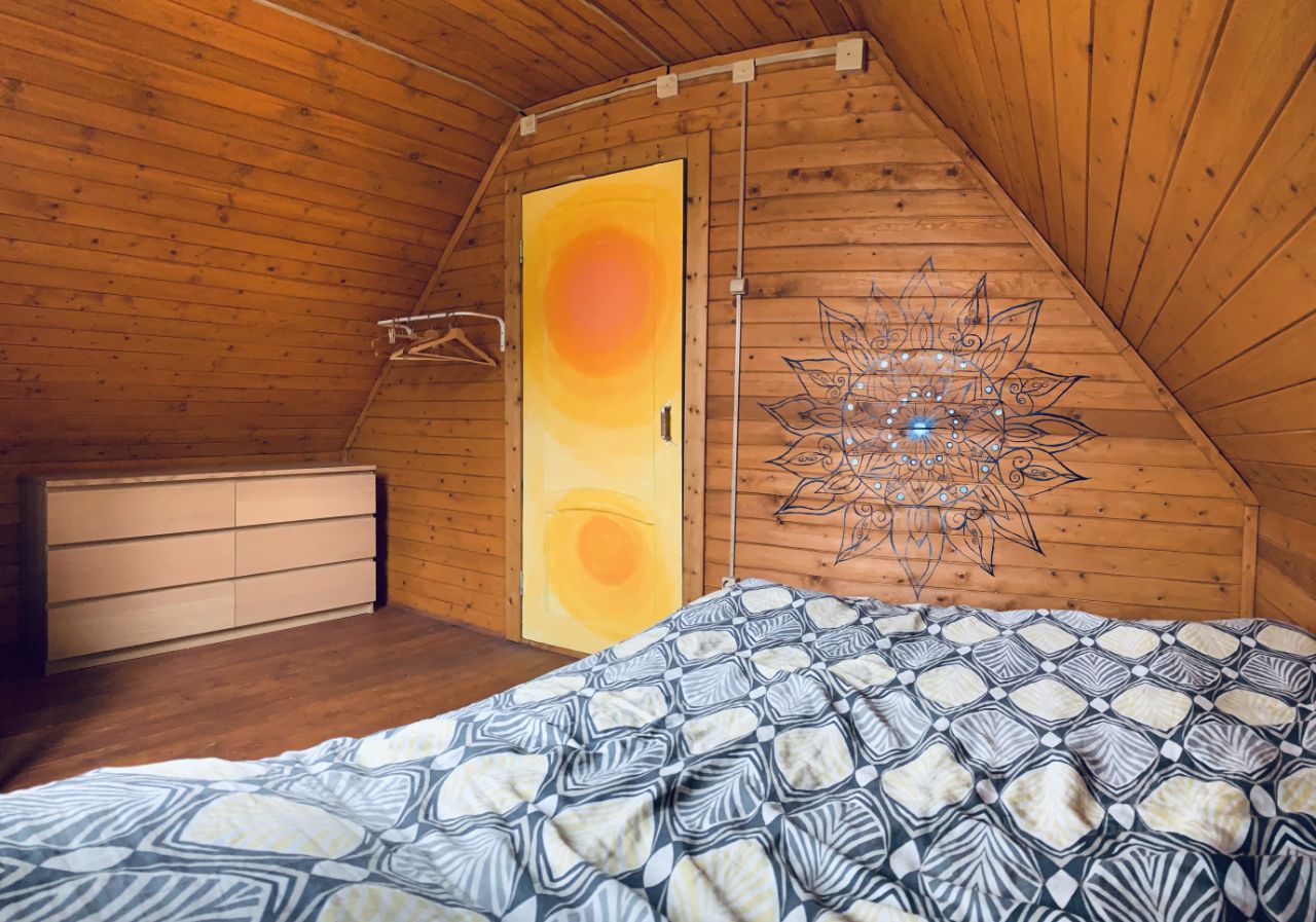 3 комнаты в доме одна большая и 2 маленькие на 2 этаже, в каждой комнате комод стол и кровать. Большой тамбур со спортивной стенкой. Уютная кухня с уголком.