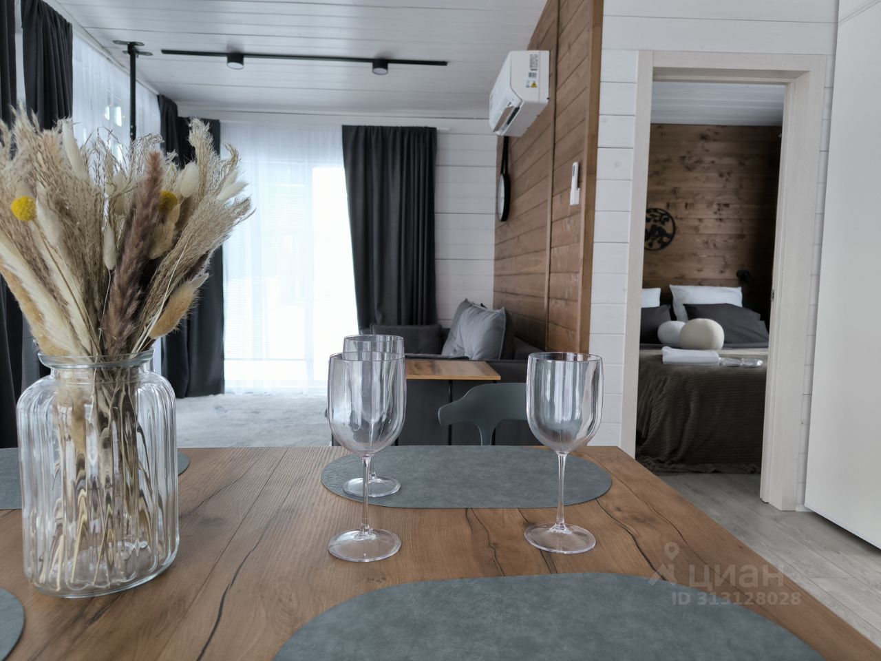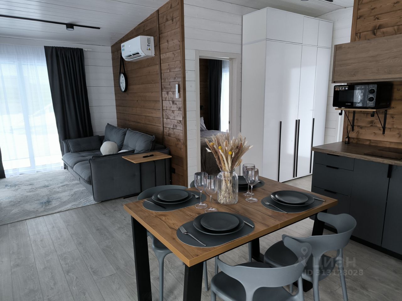 Большой диван, раскладной обеденный стол, Smart TV с выходом в интернет, Wi-Fi, кондиционер.