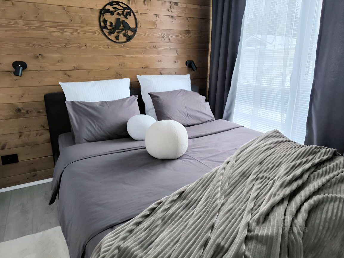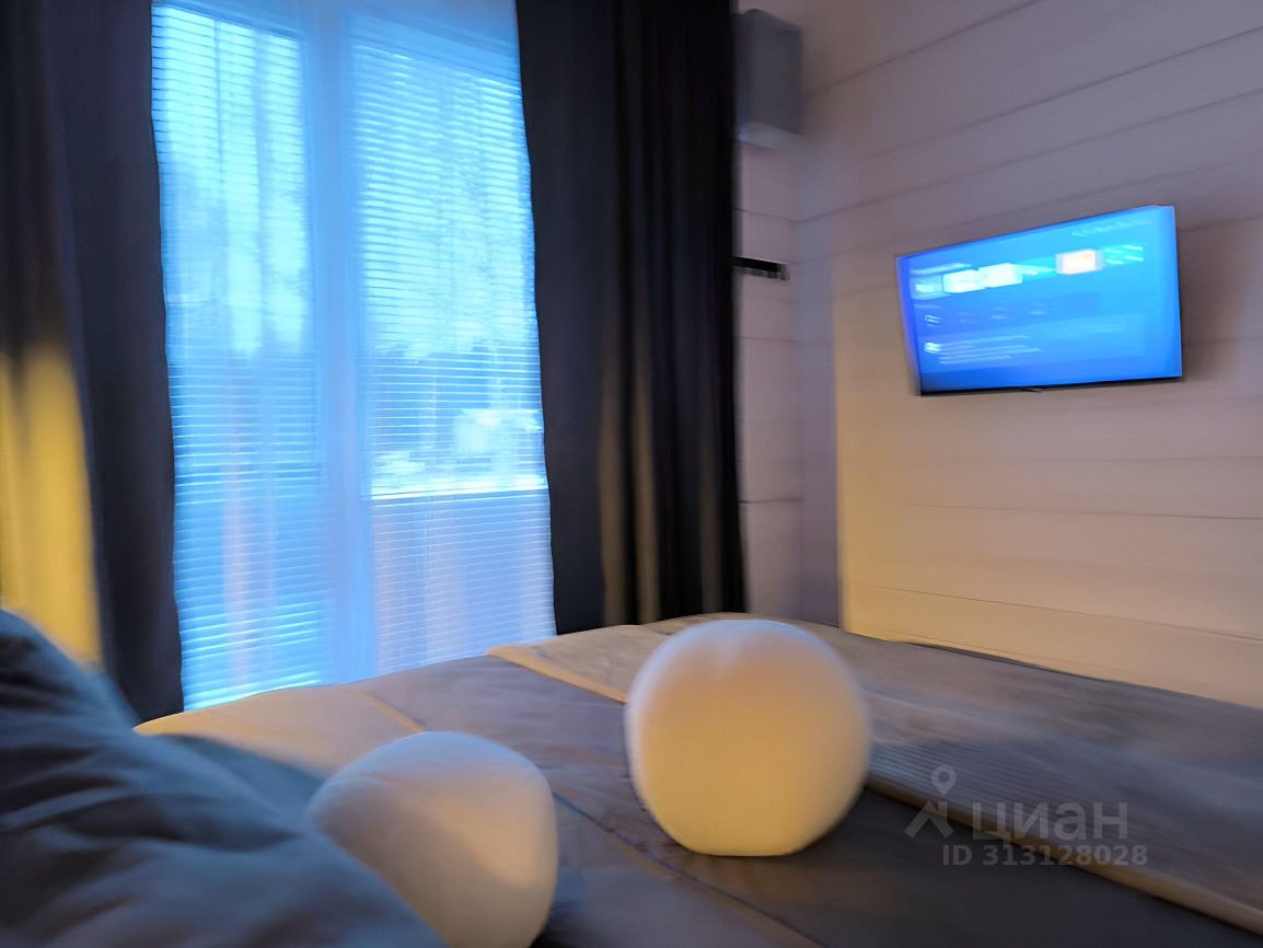 В уютной спальне установлена кровать 160 см, бризер с подогревом воздуха и панорамное окно, Smart TV с выходом в интернет.