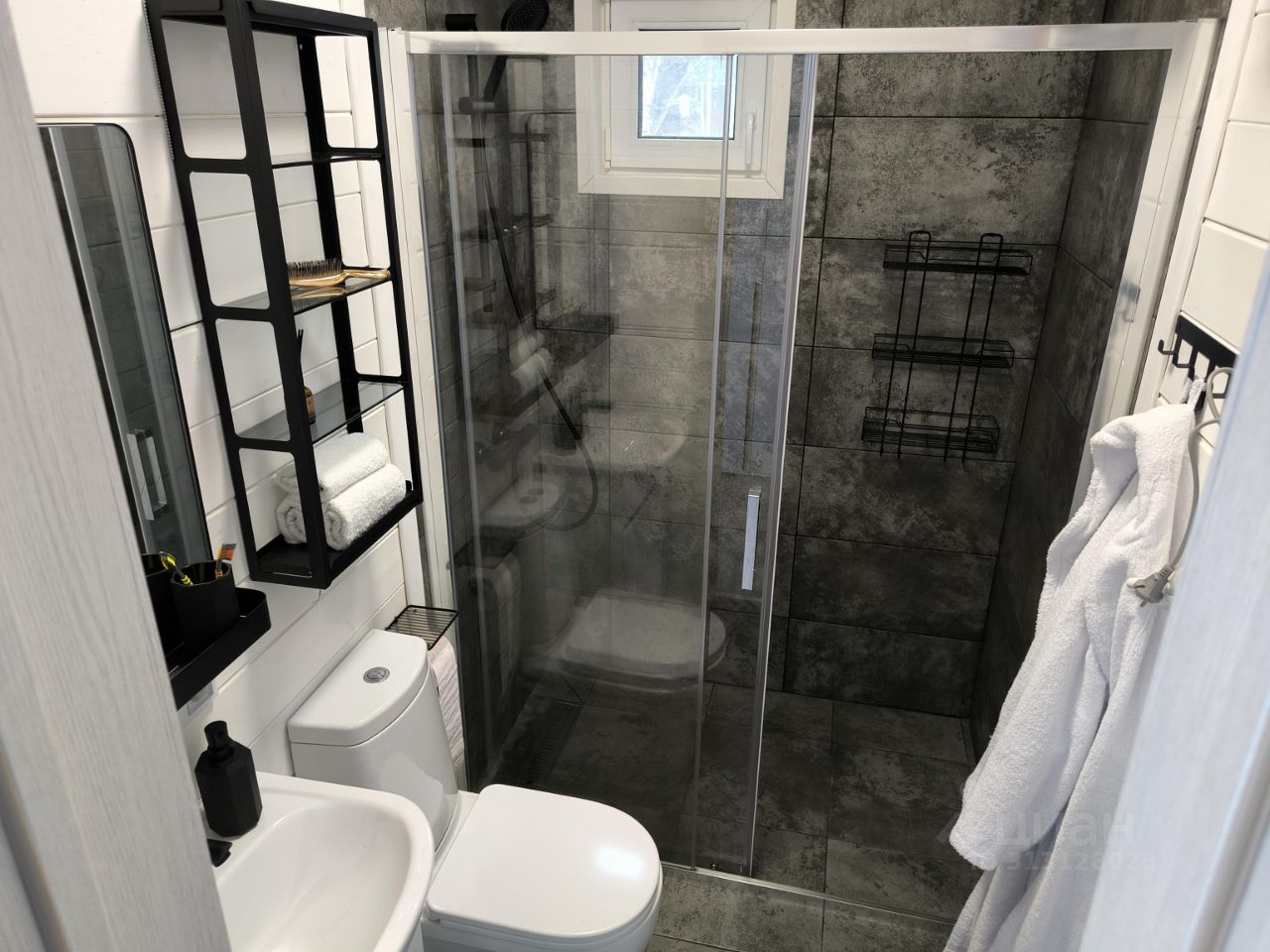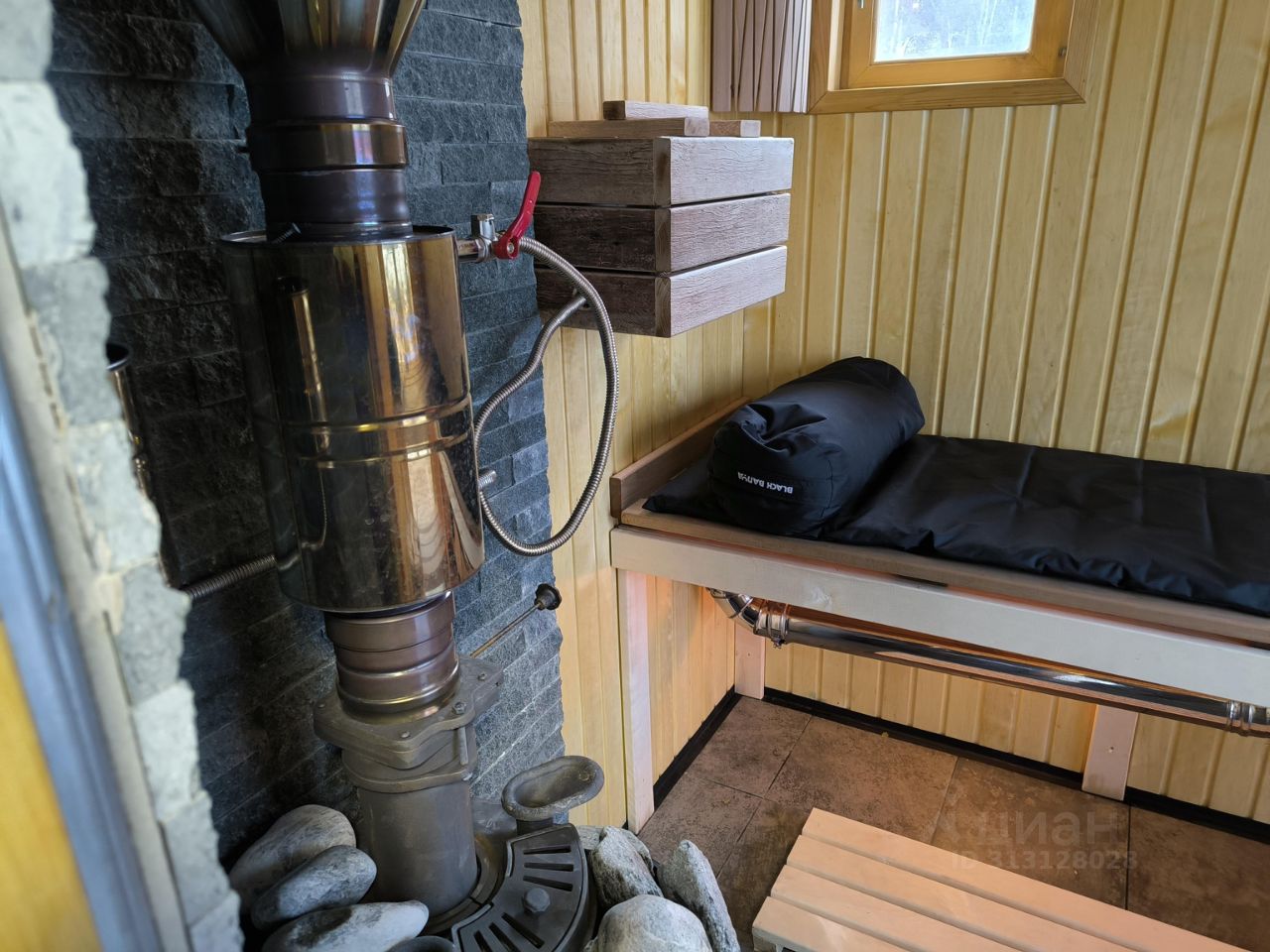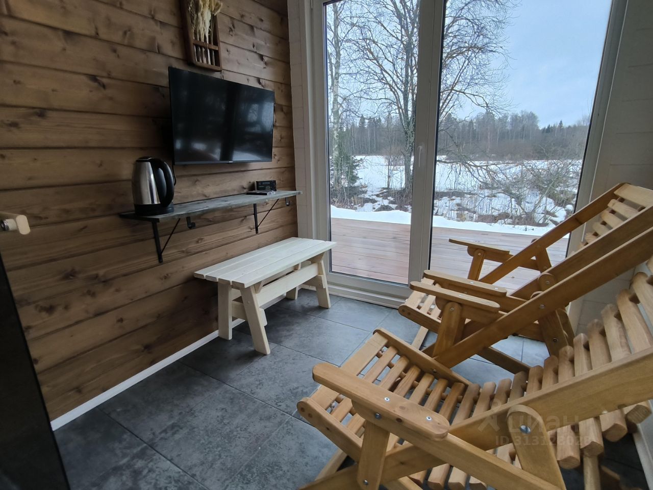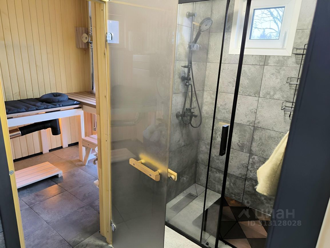 Баня на дровах, парная с панорамным окном. Есть душевая и комната отдыха.