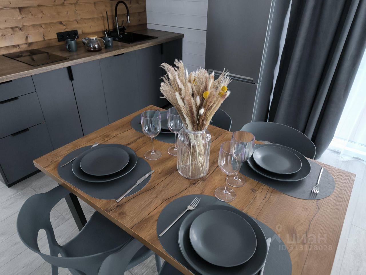 Просторная кухня-гостиная включает в себя микроволновую печь, индукционную плиту, посудомоечную машину, холодильник, также имеется измельчитель пищевых отходов. Есть вся необходимая посуда на 4-х человек. Воду можно пить из-под крана, установлена система водоочистки.