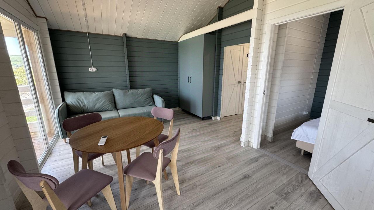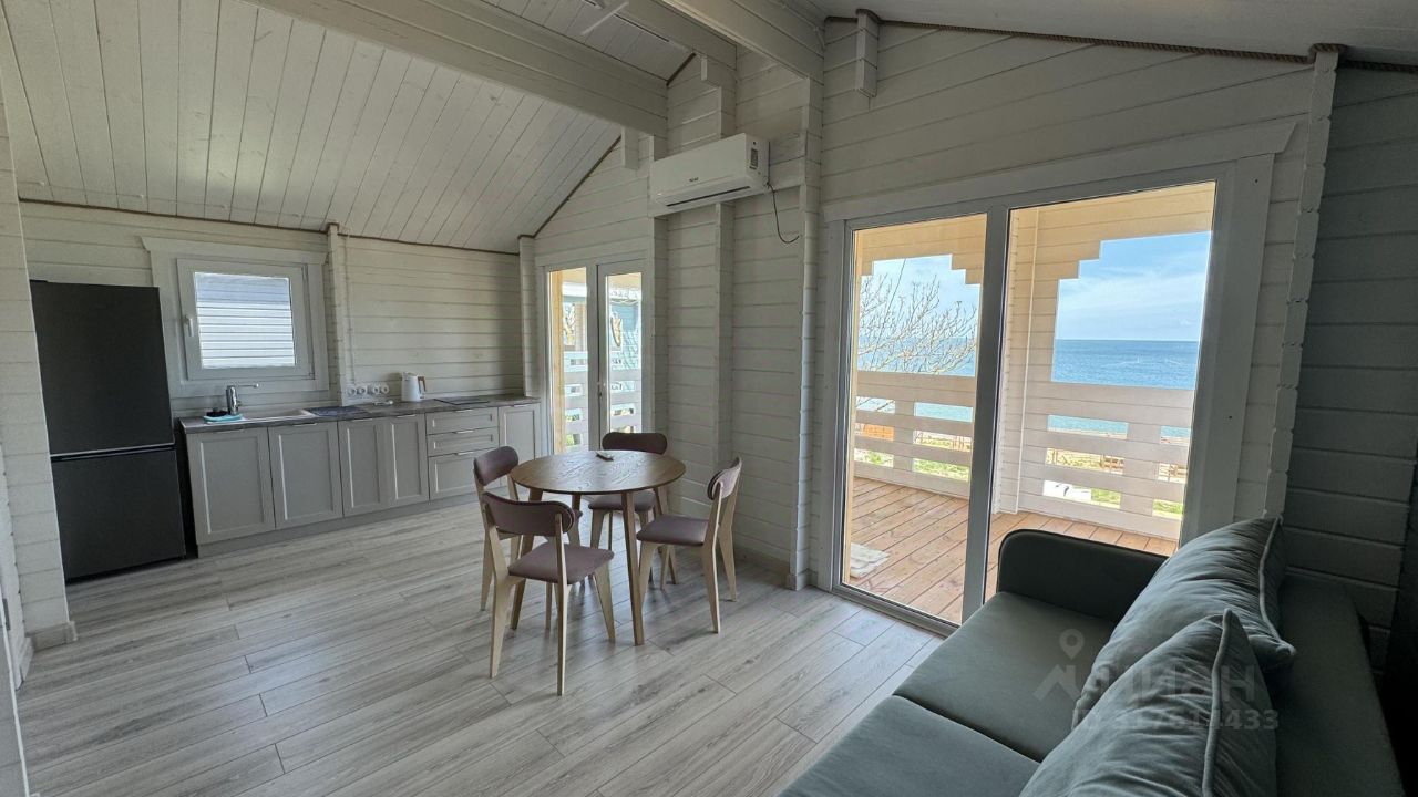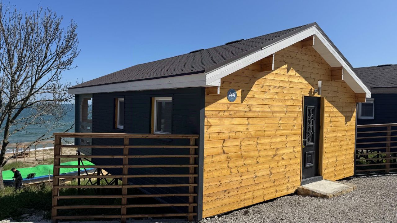 Светлый четырехместный коттедж Оазис, общей площадью 40 кв.м выполнен из натурального дерева в приглушенных оттенках природы и зелени. С отдельной спальней, кухней-гостиной, душевой комнатой и террасой с видом на море.