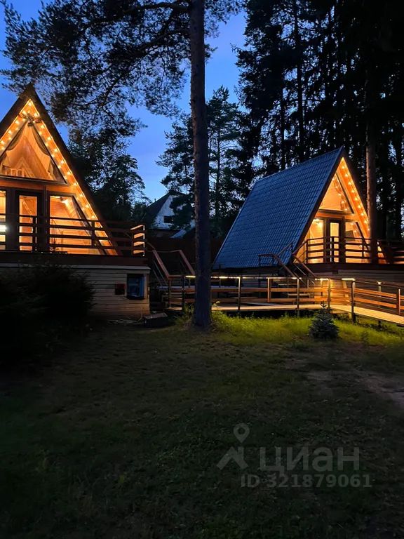А-фреймы расположены на участке среди величественных сосен и елей, с множеством интересных фотопространств.