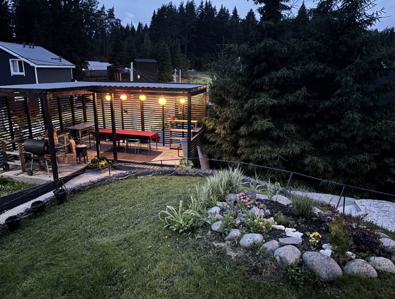В полном распоряжении гостей: три отдельные спальни с двуспальными кроватями (одна из них - мастер-спальня с собственным санузлом) и диваном; большая гостиная с ТВ, камином (который можно растопить для уютных вечеров) и раскладным диваном на двоих; баня на дровах (за дополнительную плату); большая крытая мангальная зона (со всем необходимым - казан, гриль, мангал, решетка); терраса и собственное патио; парковка на 2 машины.