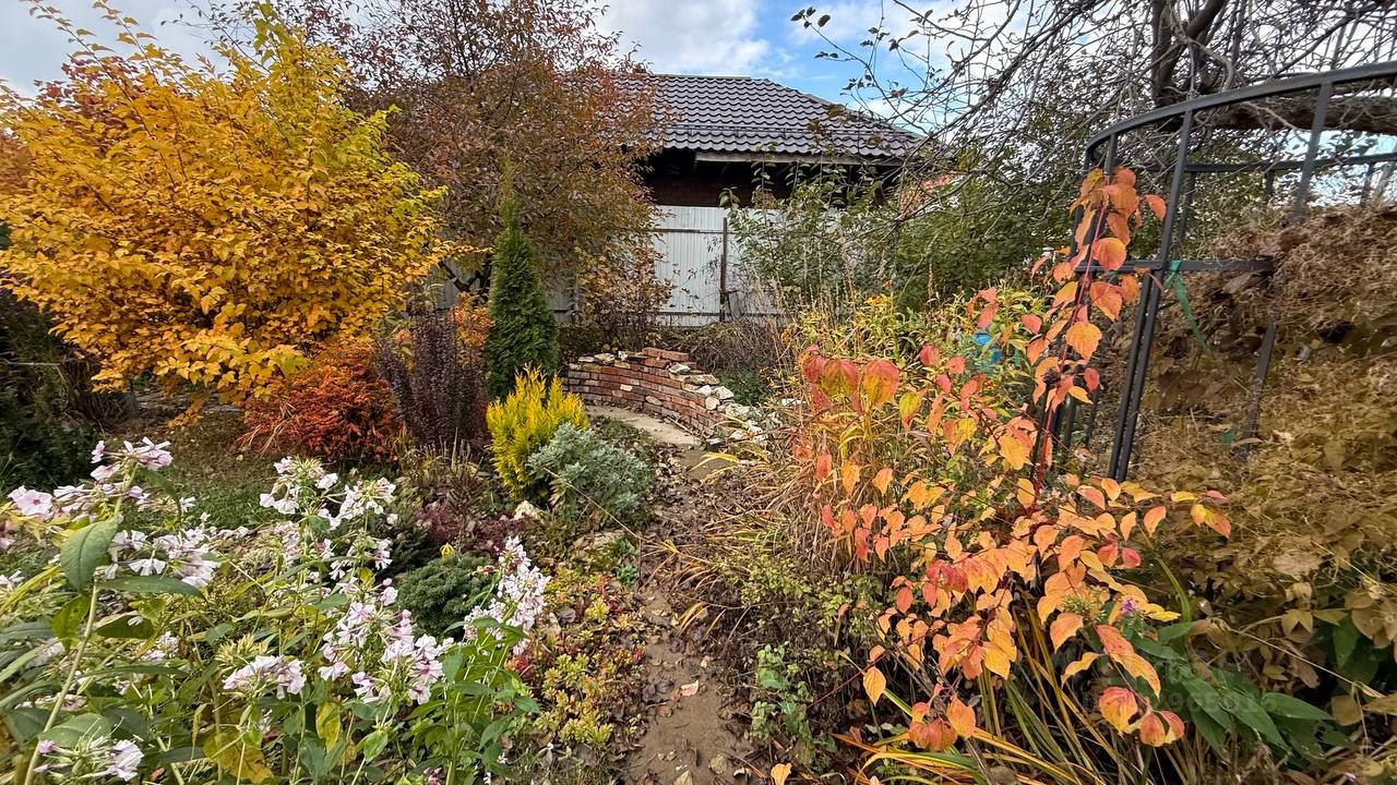 Кирпичный дом общей площадью 195 м2, на участке вместительные гараж, сарай и инвентарное помещение, а также большой и красивый сад, украшенный ландшафтным дизайном с тропами и газоном посередине. Есть начало мангальной зоны, с ней нужно еще поработать. Перед домом располагается красивый палисадник, который уберегает окна в дом от лишних глаз с улицы.