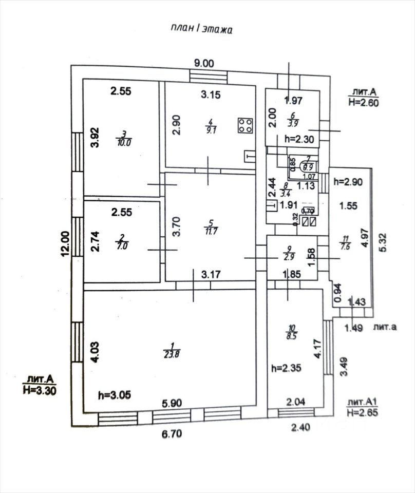 Жилых комнат с отоплением: 8.