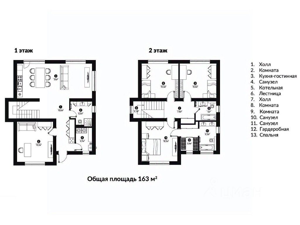 | Площадь общая | 163 |