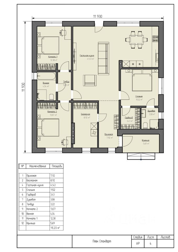 Площадь общая | 115 |