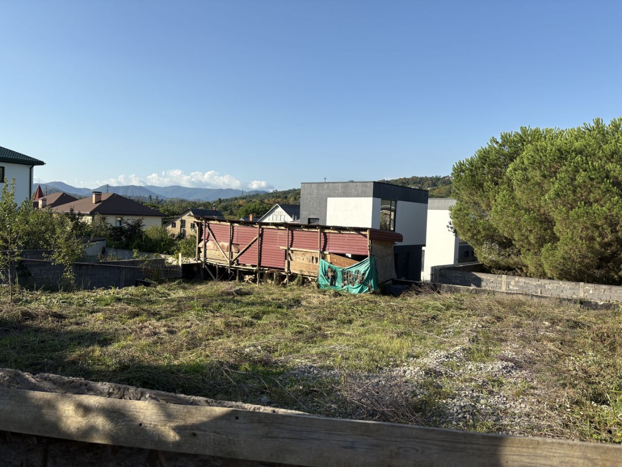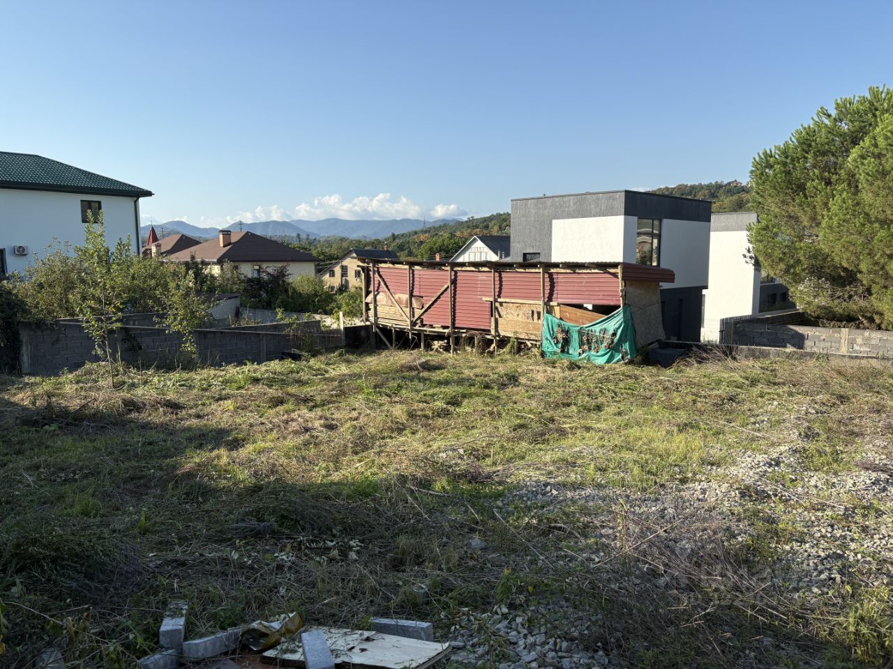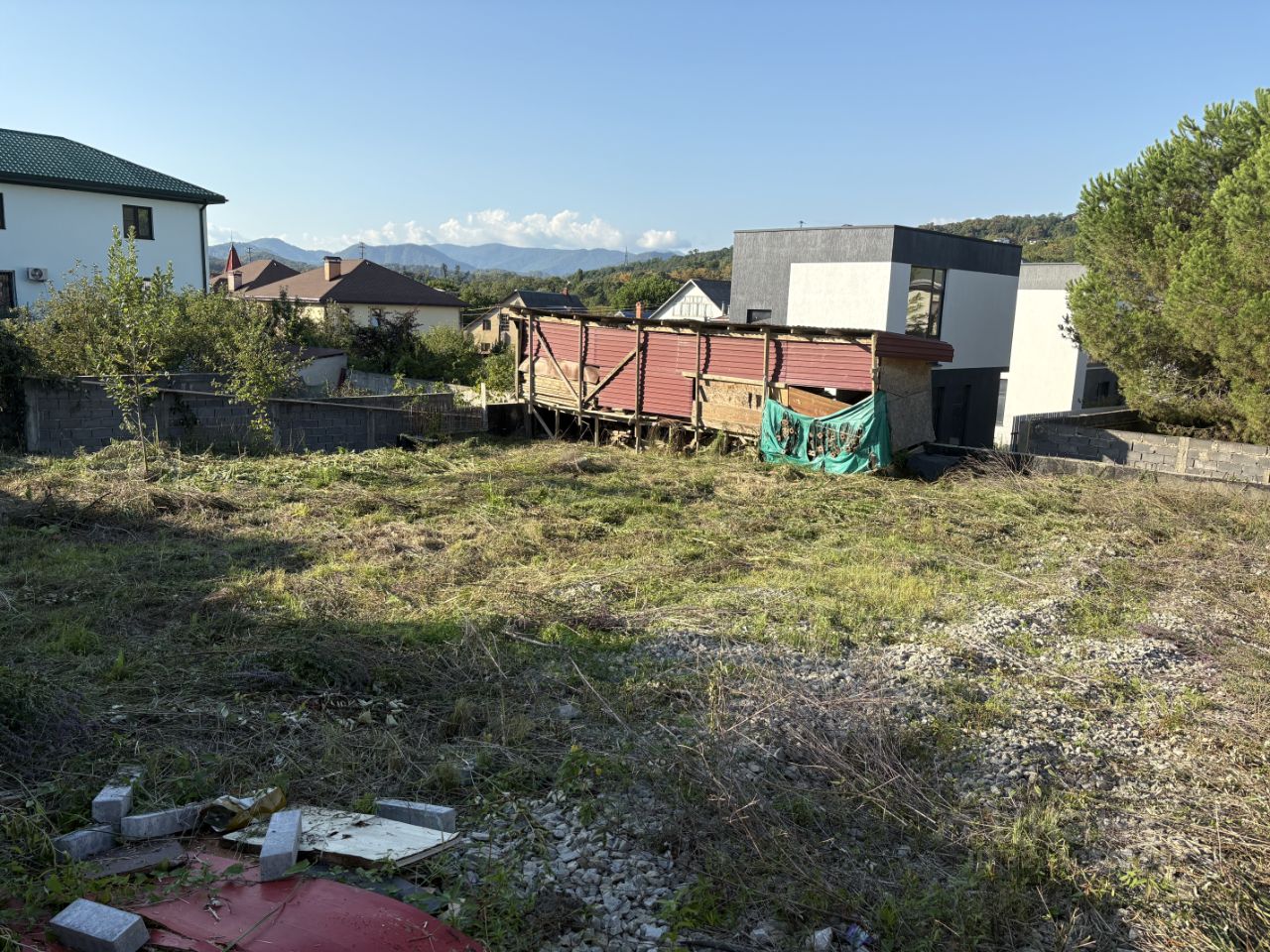 ровный участок, сделана подпорная стена, хороший заезд, дорога к участку ровная, асфальт.