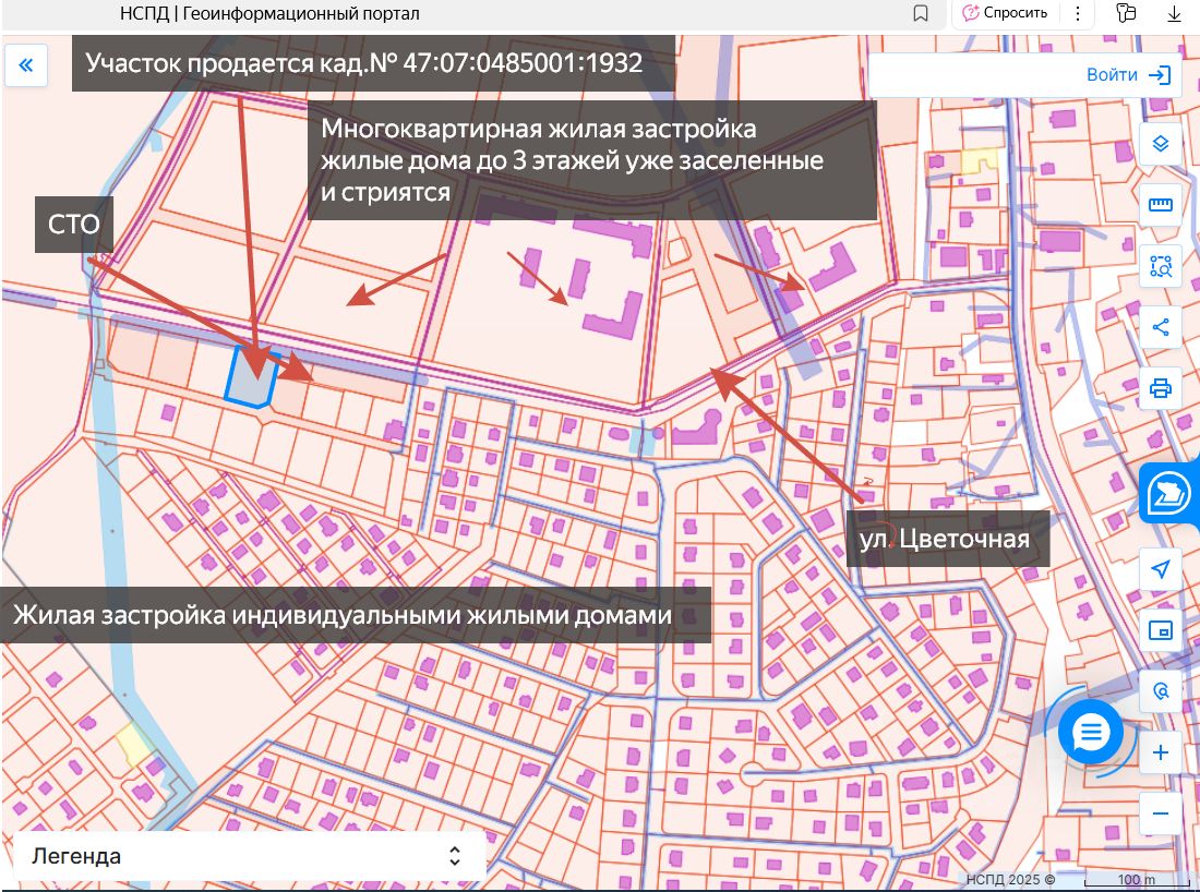 Участок 21,45 соток. в окружении сложившейся с 80-х годов и активно развивающейся новой жилой застройки индивидуальными жилыми домами, многоквартирными до 3-х этажей домами и объектами инфраструктуры. Категория: земли населенных пунктов; виды разрешенного использования: ИЖС, Блокированная жилая застройка, Обслуживание жилой застройки; расположен в территориальной зоне ТЖ-1. К участку возможен подъезд с двух сторон: непосредственно с улицы Цветочной - асфальтированная дорога и по грунтовому параллельному проезду. На участке мелкорослые кусты. Электроснабжение: подключено 15 кВ. Газовая труба заходит на участок. к участку проведен сетевой интернет. Отвечу на все вопросы о возможности использования земельного участка. Возможен выкуп соседнего участка площадью 19,88 сотки с аналогичными характеристиками.