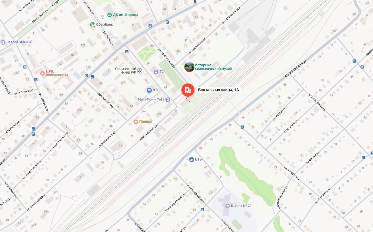 Здание расположено в окружении жилой и административной застройки. Хорошая транспортная доступность, удобный подъезд с улицы Вокзальная. Наличие парковочных мест на прилегающей территории. В шаговой доступности магазины, в 60 м. остановка общественного транспорта.