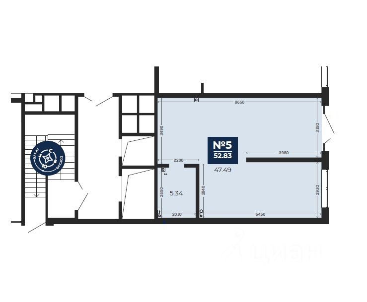 Площадь 52,83 кв. м, 1-й этаж жилого дома. Витражное остекление, потолки 3,6 м, черновая отделка, свободная планировка (перегородками выделен сан.узел), коммерческая вытяжка. Электрическая мощность 16 кВт.