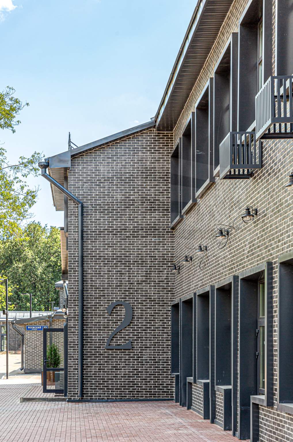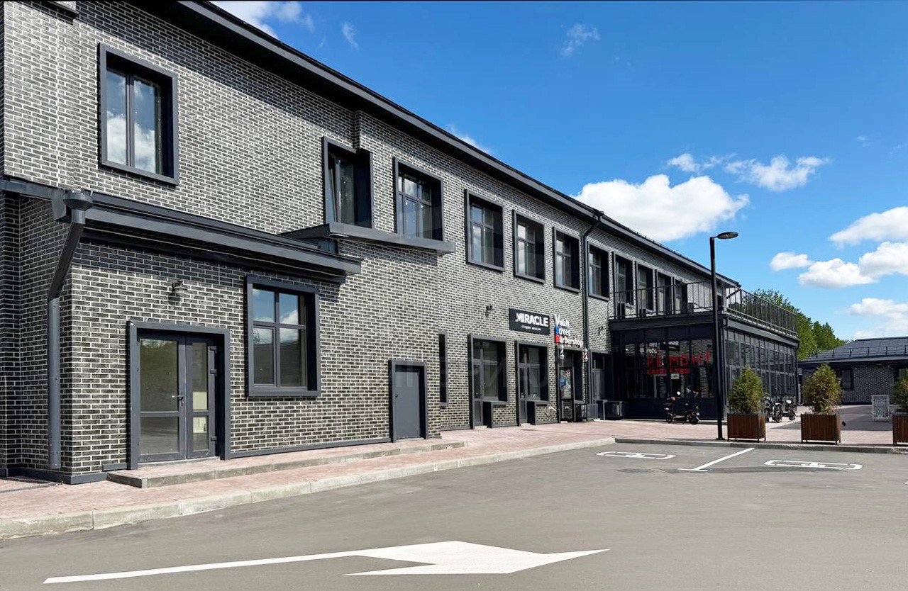 Отделка фасадов выполнена панелями с имитацией клинкерного кирпича. Дополнительно на территории организованы зоны отдыха на свежем воздухе, также дополнительно имеется возможность для организации летних веранд и кафе.