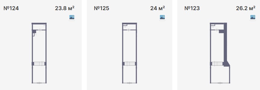 Площадь лотов — 26.2 - 23,8 - 24 м2.