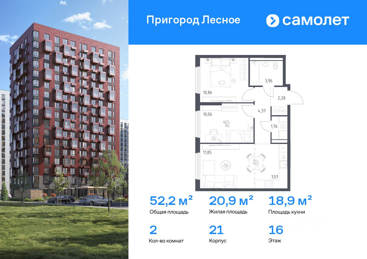 Строим кварталы для жизни с заботой о будущем. Предлагается 2-комнатная квартира комфорт-класса 52,21 кв.м в корпусе 21 на 16 этаже, в ЖК "Пригород Лесное" Квартира без отделки. Доступность опции...