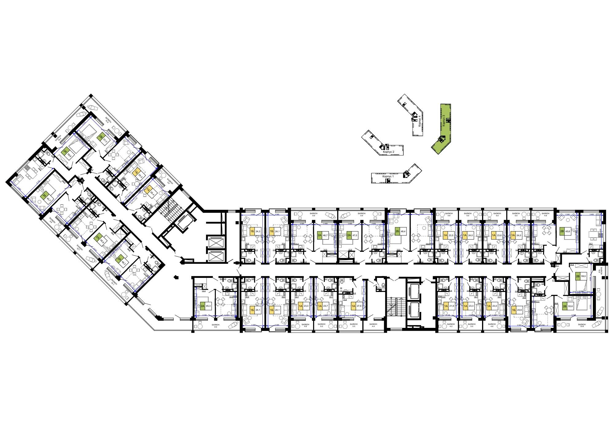 Квартира располагается на 5 этаже 9-этажного дома в ЖК Гостиничный комплекс Мореград.