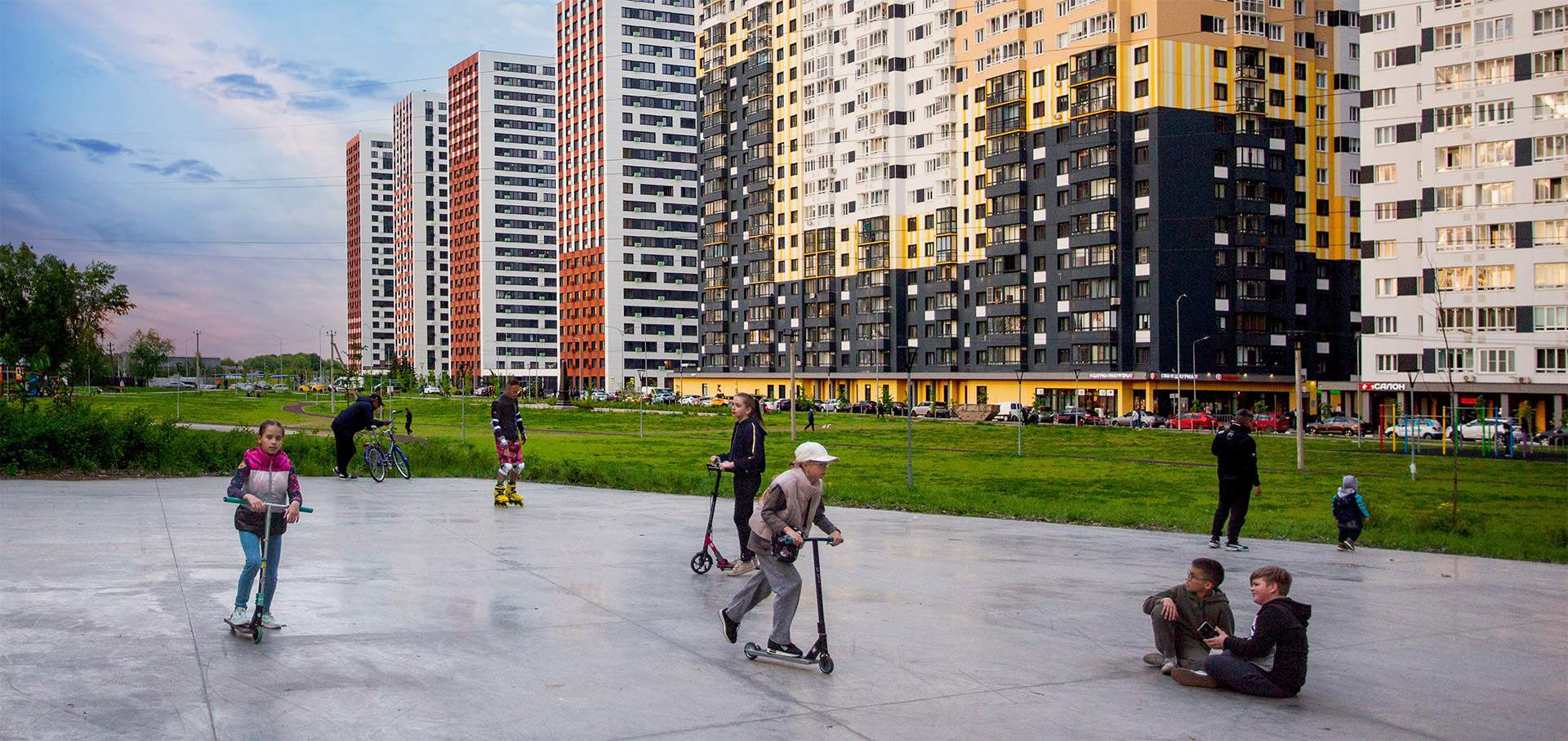 Подземная парковка. Инфраструктура: школа, детский сад, детские площадки, спортивные площадки, супермаркет, коммерческие объекты.
