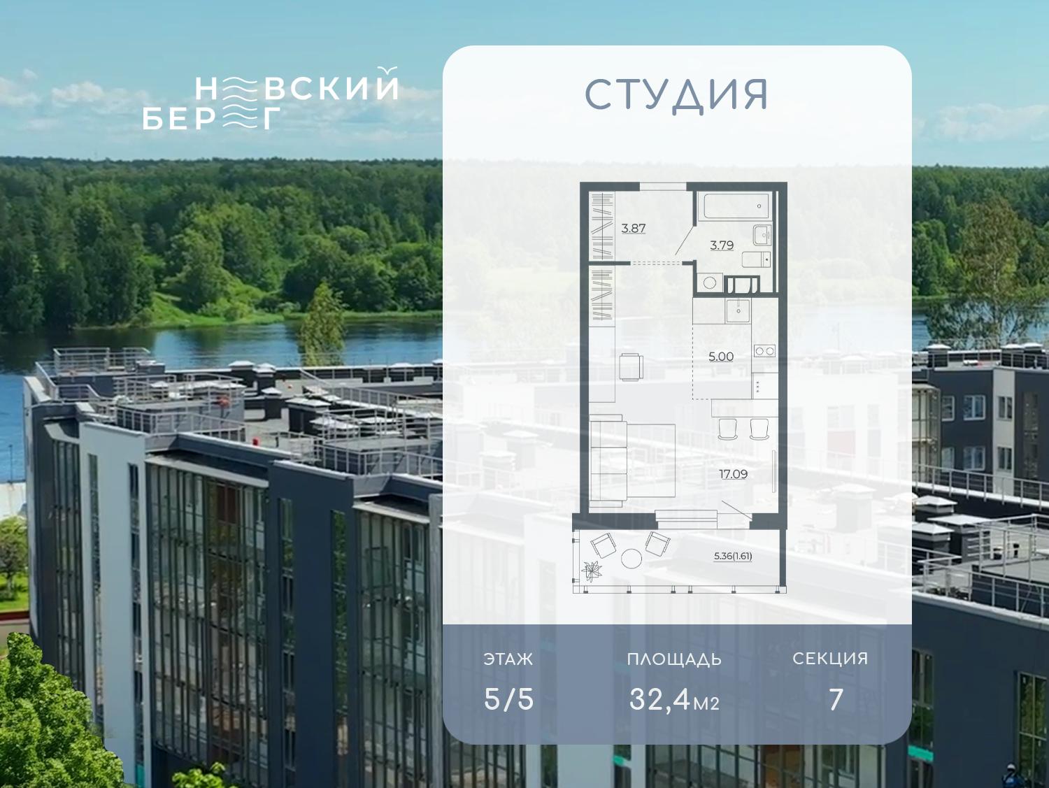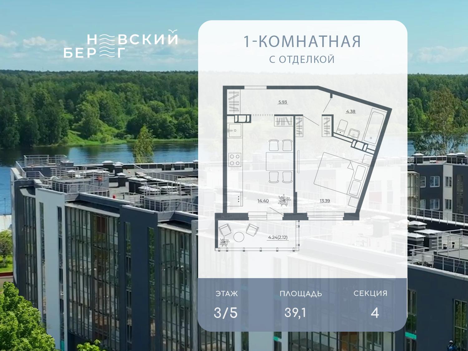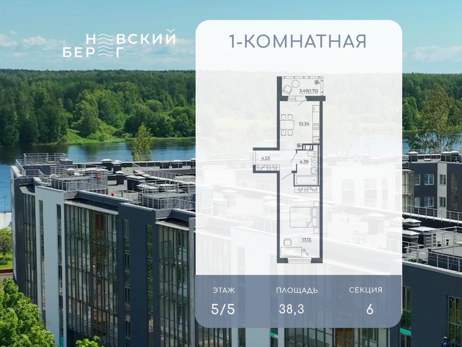 Продается 1-комнатная квартира на 5 этаже 5-этажного дома в ЖК «Невский берег». Общая площадь квартиры составляет 40,30 кв. м. Номер квартиры 30.