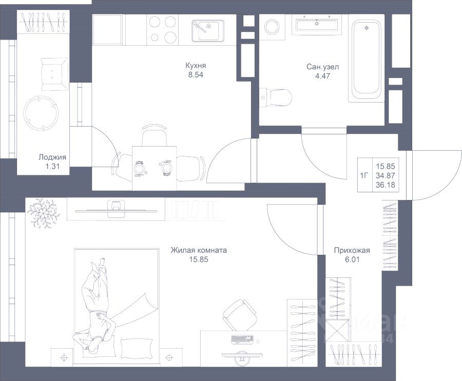 | Кол.во комнат | 1 |
