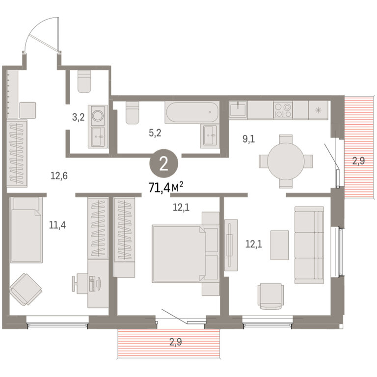| Площадь общая | 71.37 |