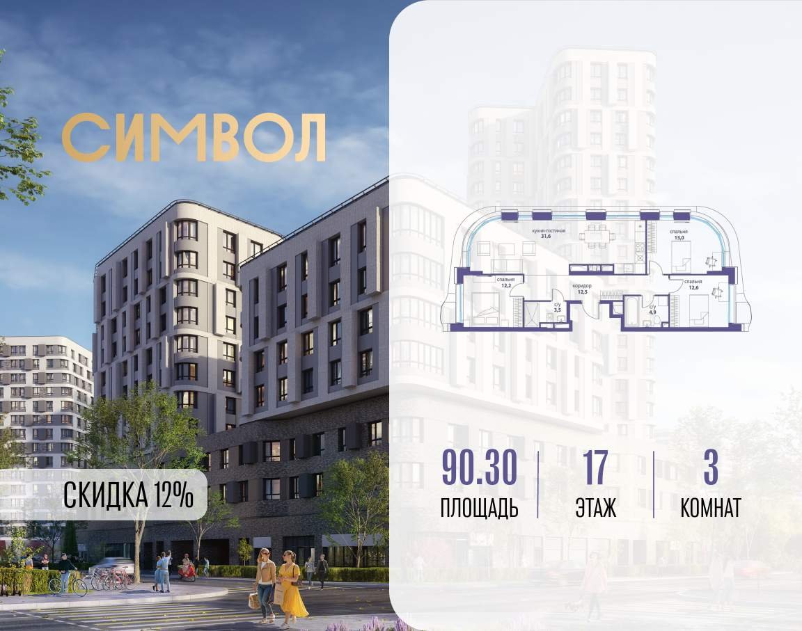 Продается 3-комнатная квартира от застройщика: общая площадь 90.30 м, жилая 37.80 м, кухня 31.60 м, 17-й этаж, жилой квартал «Вдохновение», корпус 34 (секция 1) . Срок сдачи: 4 квартал 2027 года....
