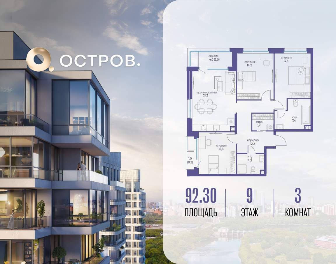 Продаётся 3-комн. квартира от застройщика: общая площадь 92.30 м, жилая 41.50 м, кухня 21.20 м, 9-й этаж, жилой квартал «Остров 6», корпус 3 (секция 1) . Срок сдачи: 4 квартал 2025 года. 2...