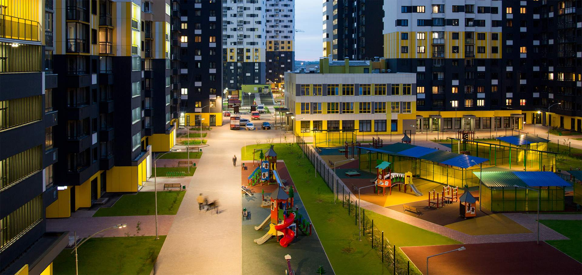 Подземная парковка. Инфраструктура: школа, детский сад, детские площадки, спортивные площадки, супермаркет, коммерческие объекты.