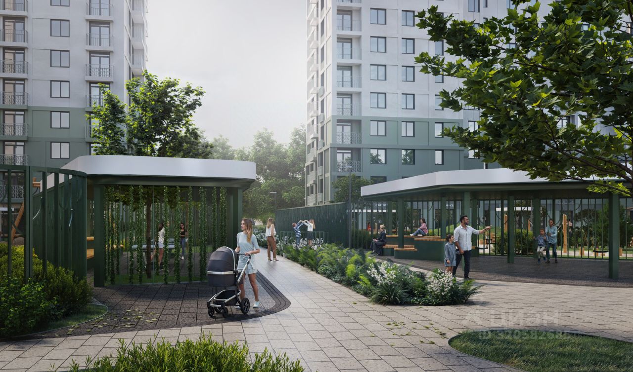 Во дворах будет своя дорожка в парк, павильоны для пинг-понга и с качелями, спортивная и детская площадки, площадка для выгула собак.