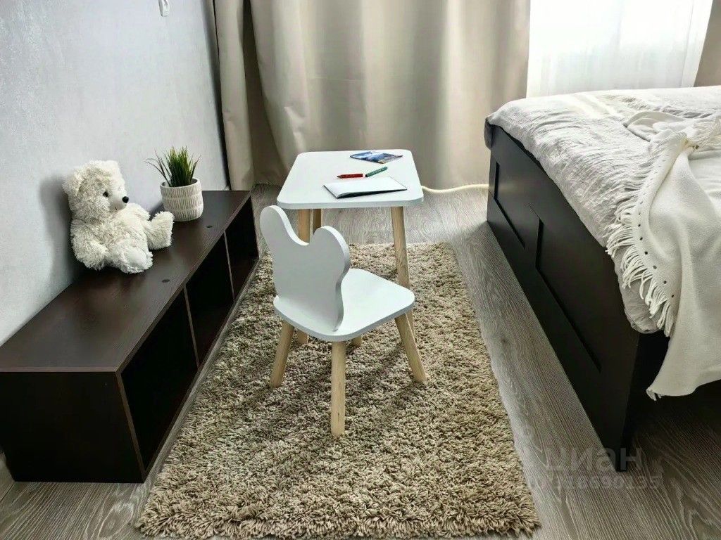 Также в квартире есть двуспальная кровать с ортопедическим матрасом, раскладной диван, шторы блэкаут, постельное бельё, полотенца, средства гигиены, зона хранения для вещей.
