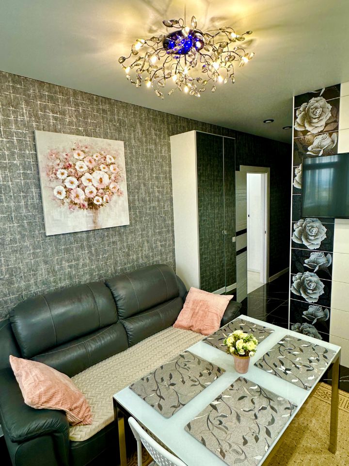 В квартире имеется все для комфортного проживания: квартира однокомнатная (НЕ СТУДИЯ) что не маловажно для комфорта, 2 TV, кабельное+цифpовое smart - ТV, WI - FI, на кухне имеется диван из натуральной кожи, в зале большая удобная велюровая кровать 160*200 + односпальная кровать 90*200, большая гардеробная, кухонный гарнитур со встроенной техникой (варочная панель, вытяжка, холодильник, духовой шкаф), также имеется стиральная машина indesit, сплит-система, СВЧ, утюг, гладильная доска, сушилка для белья, всегда чистое постельное белье и ванные принадлежности. В квартире выполнен новый ремонт из качественных и дорогих материалов. Обои, сантехника, кух.гарнитур производство - Италия! Высокие, двухуровневые потолки со светодиодным освещением, хрусталь! А различные предметы интерьера, картина и прочее, наполняют квартиру уютом и скрасят ваше время пребывания у нас в гостях! Высокий 24-й этаж, потрясающий ПАНОРАМНЫЙ вид из окон!