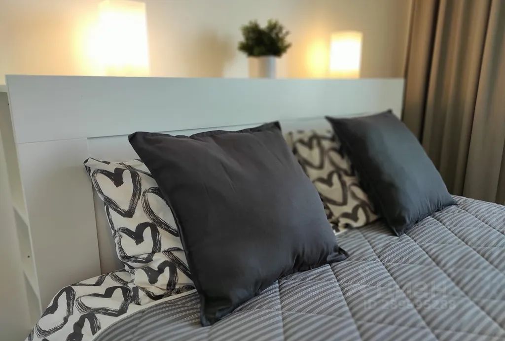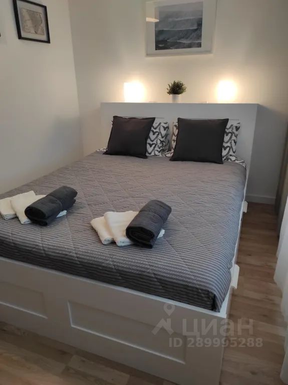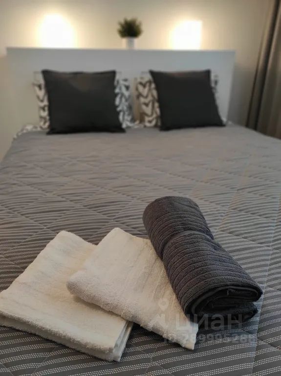 В жилой зоне студии есть двуспальная кровать с ортопедическим матрасом. К приезду гостей кровать всегда застелена идеально чистым постельным бельём.