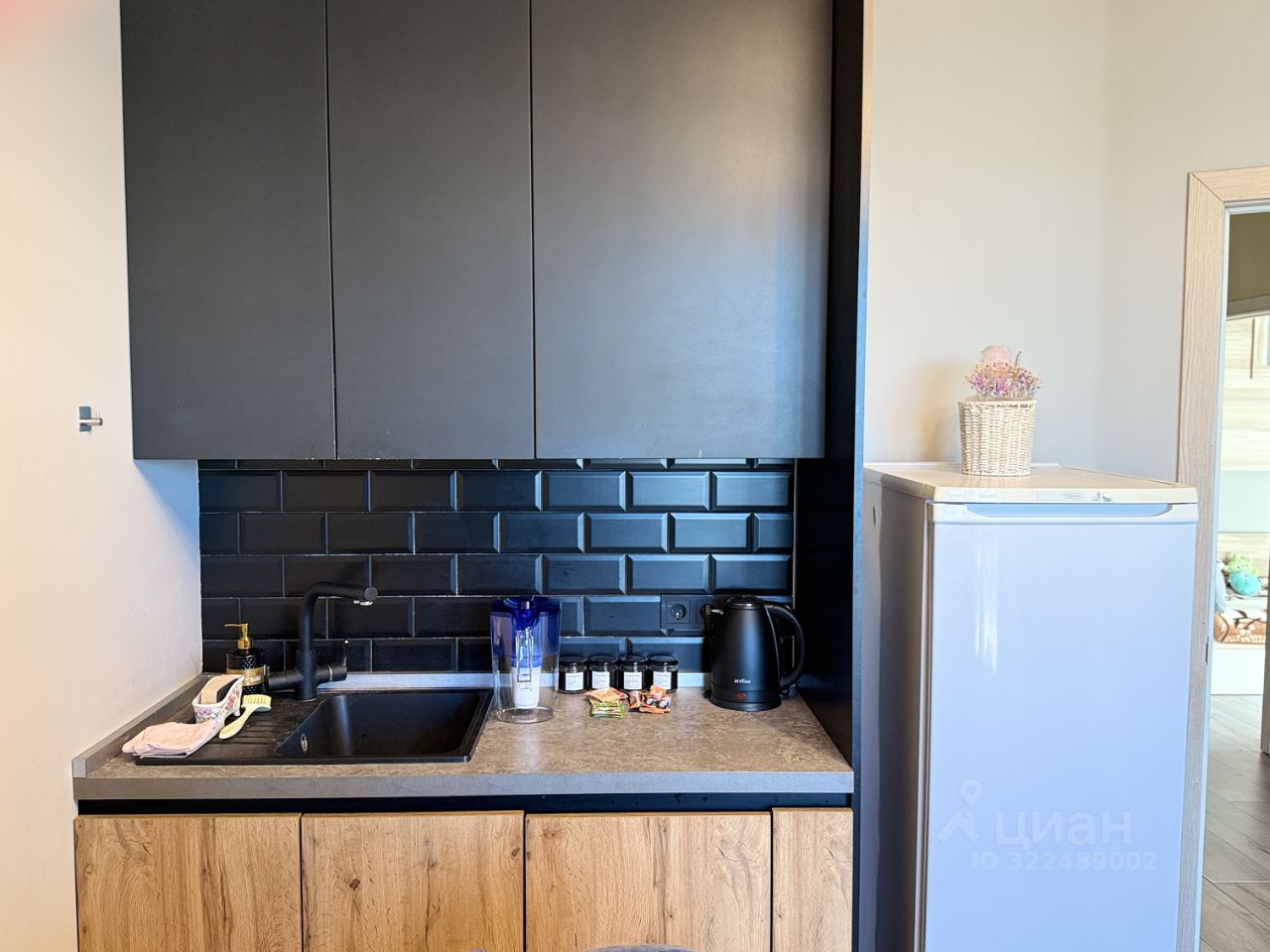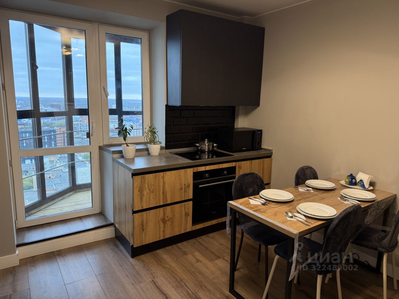 - Полностью оборудованная кухня с бытовой техникой (плита, холодильник, чайник, микроволновая печь, индукционная плита, духовка, фильтр для воды)
