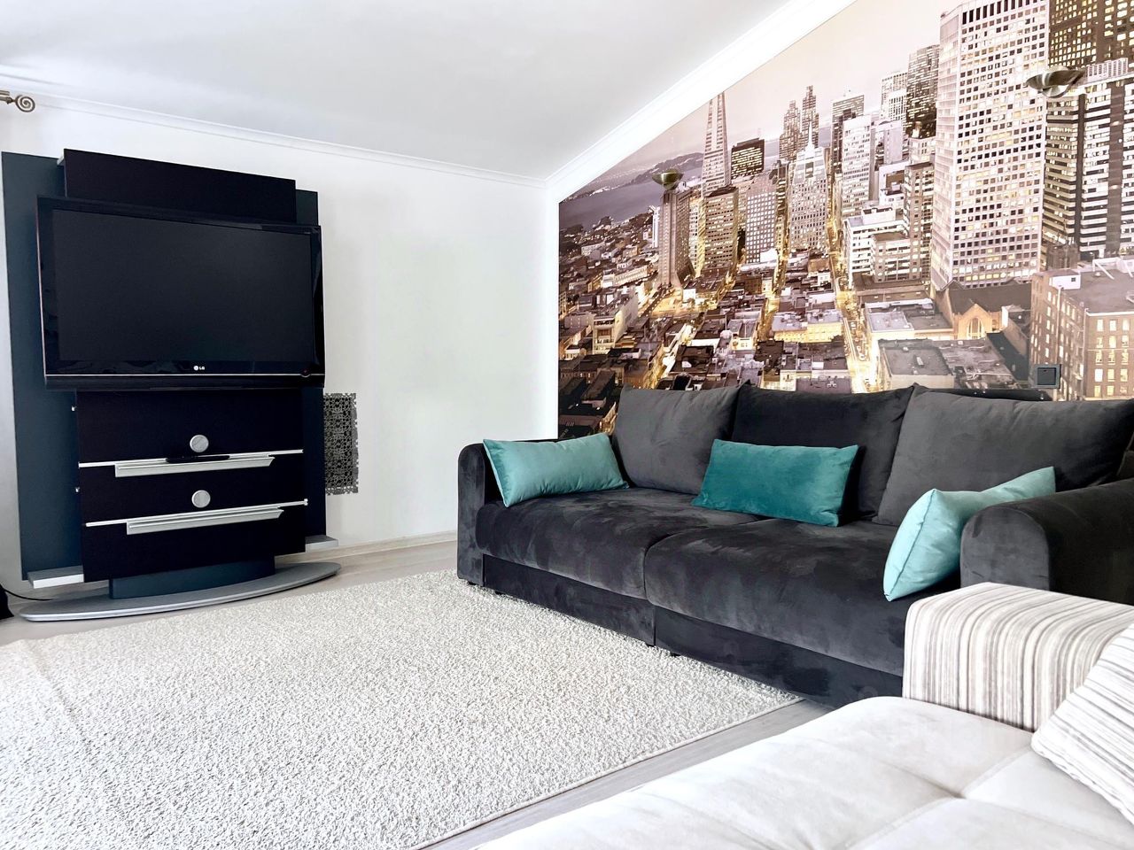 Очень светлая уютная квартира в центре Казани. В квартире: 2 двуспальные кровати, 2 раскладных дивана, кухня с обеденной зоной, укомплектованная всей необходимой техникой и посудой, телевизор и санузел с ванной джакузи.