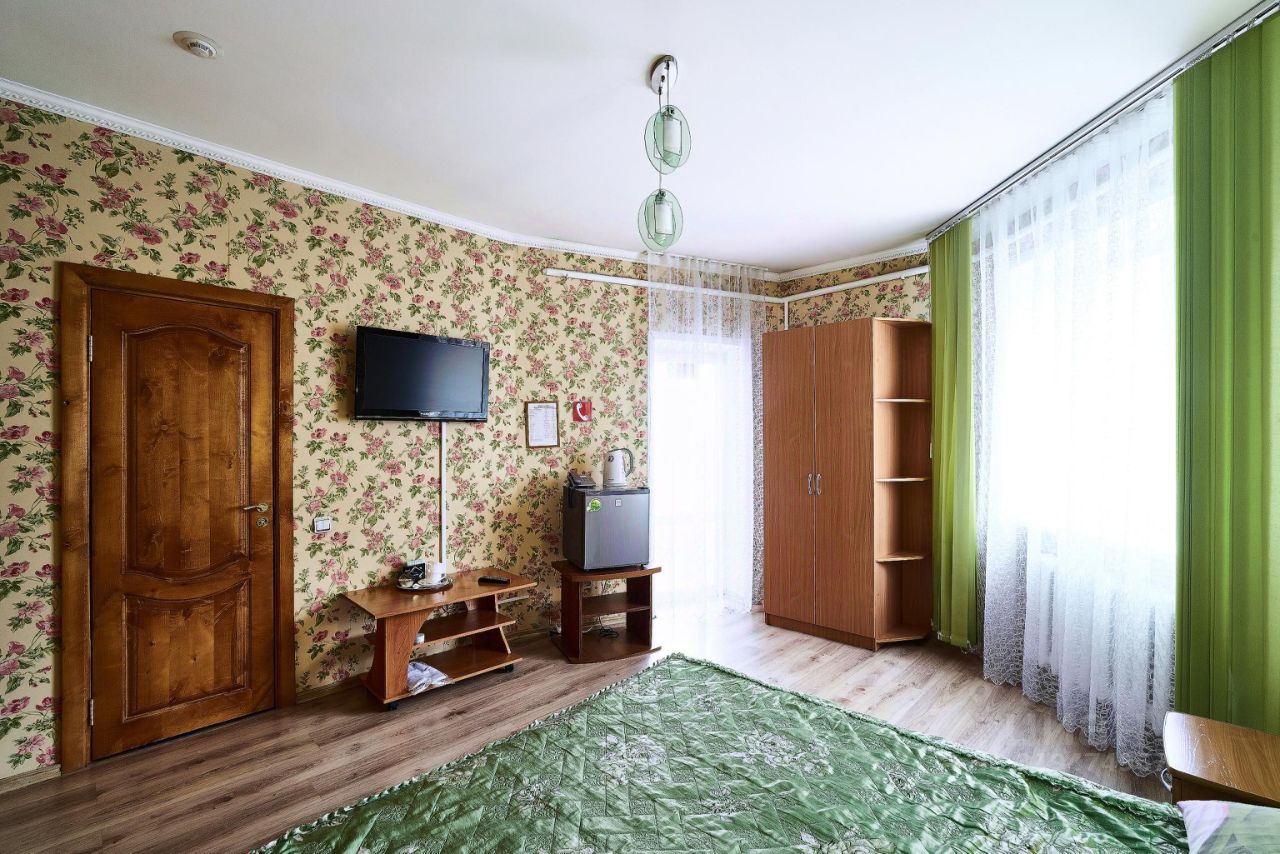 Просторные и комфортные номера оборудованы удобной мебелью, санузлом с душевой кабиной, телевизором, холодильником, безлимитным WI-FI, чайником, феном, тапочками и туалетными принадлежностями.