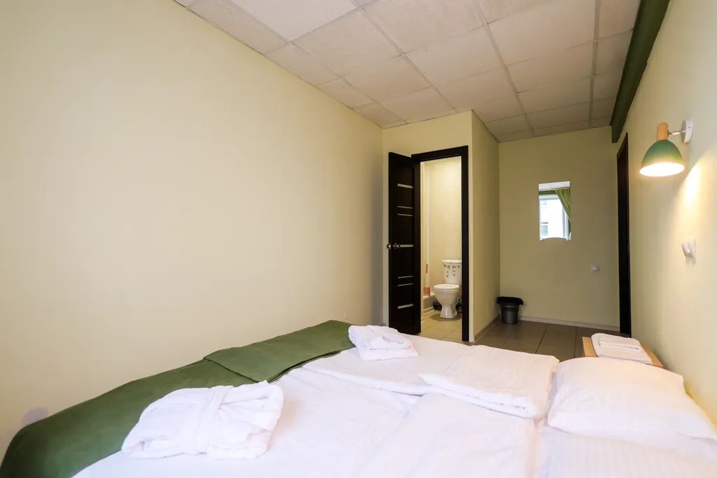Номер с одной двухспальной кроватью, туалет и умывальник в номере, светильники, полочки для личных вещей. Ванна/душ на этаже