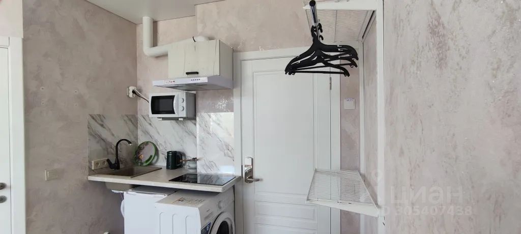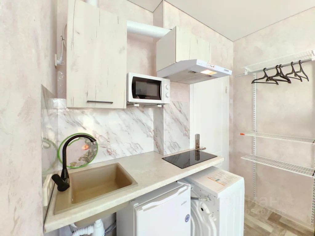 - Полностью укомплектованная кухня: индукционная плита, чайник, микроволновая печь, холодильник, посуда и столовые приборы